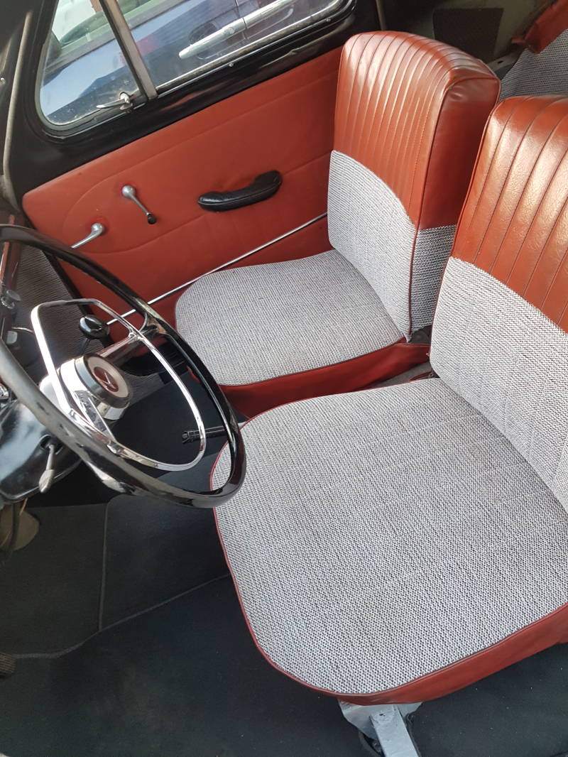 restauratie interieur mercedes pagode, nieuwe tapijtsset, stoelen bekleed door specialist exact zoals het origineel